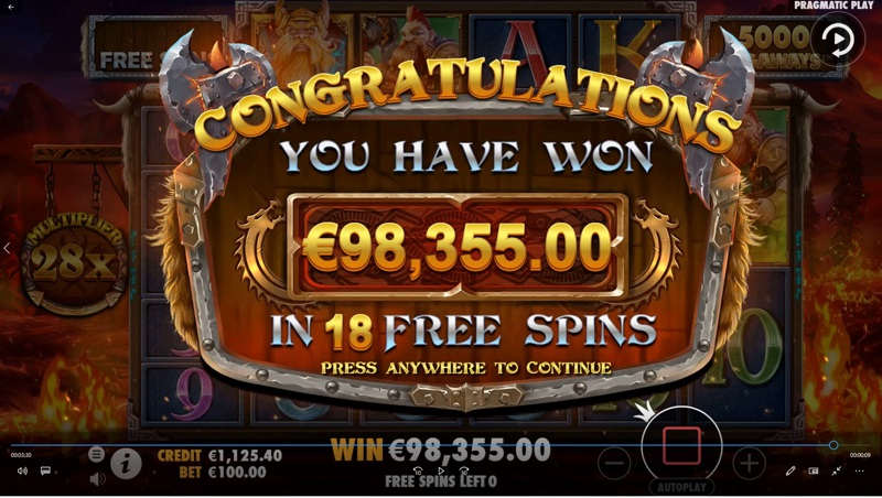 Por otro lado, Free Spins solo se activó una vez. Durante el bonus, conseguí aproximadamente €200 gracias a un multiplicador. El Hammer Strike fue menos frecuente, pero también más rentable.