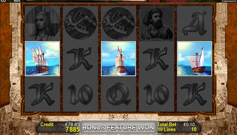 Однією з бонусних функцій Columbus Deluxe є раунд фріспінів. Його активація відбувається, коли на першому, третьому і останньому барабанах випадає символ корабля – Santa Maria, Nina, Pinta.