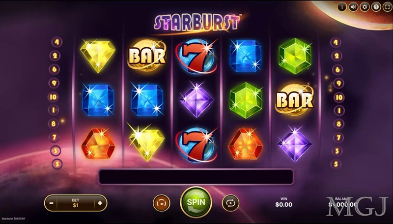 O jogo é fornecido com 5 bobinas, 3 linhas e um sistema de pagamento All Ways Pays. O sistema é crucial porque o Starburst não tem várias linhas de pagamento.