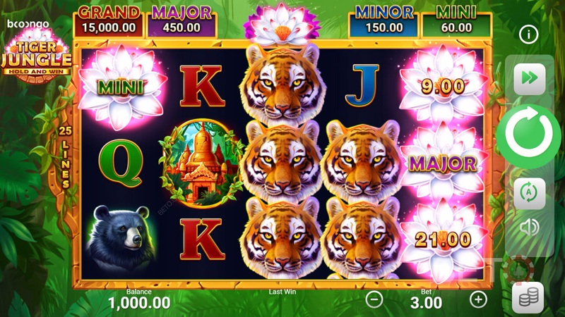 Фріспіни з Tiger Jungle: Hold and Win можуть бути ще досить прибутковими, коли комбінуються з ретригерами. Огляд Tiger Jungle: Hold and Win не міг би бути повним без згадки про його цікаві бонуси.